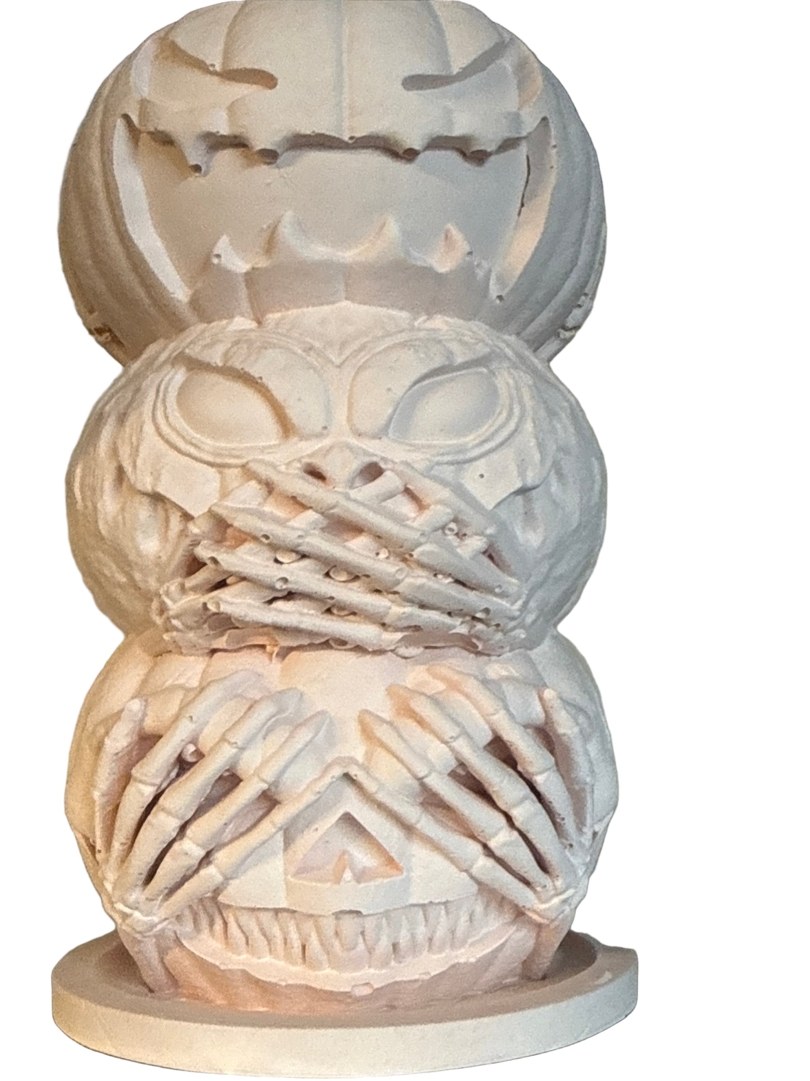 Diese einzigartige Kürbisfigur ist ein handgefertigtes Kunstwerk aus hochwertiger Kerakraft Keramik-Gips Gießmasse. Die drei gestapelten Kürbisse mit ihrer detaillierten Rillenstruktur sind ein echter Hingucker und vielseitig einsetzbar.